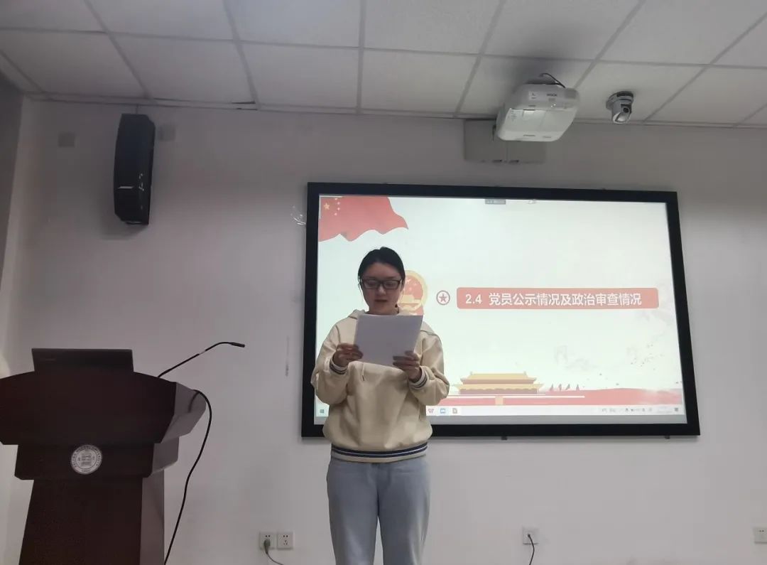 首先,由支部书记宣读发展大会出席情况。经清点,实到会党员人数超过支部有表决权党员的半数,符合要求,可以开会。全体起立,奏唱国际歌。之后,会议表决通过了监票人、计票人名单。