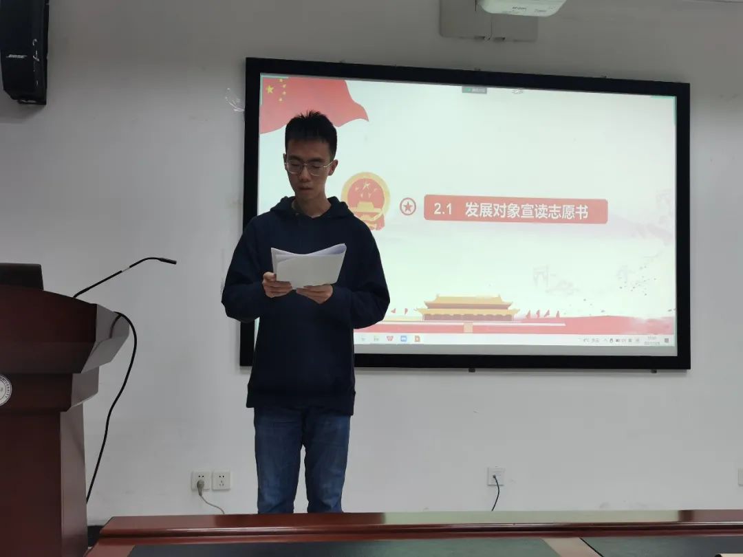 接着,由韩宇阳同志宣读入党志愿书。