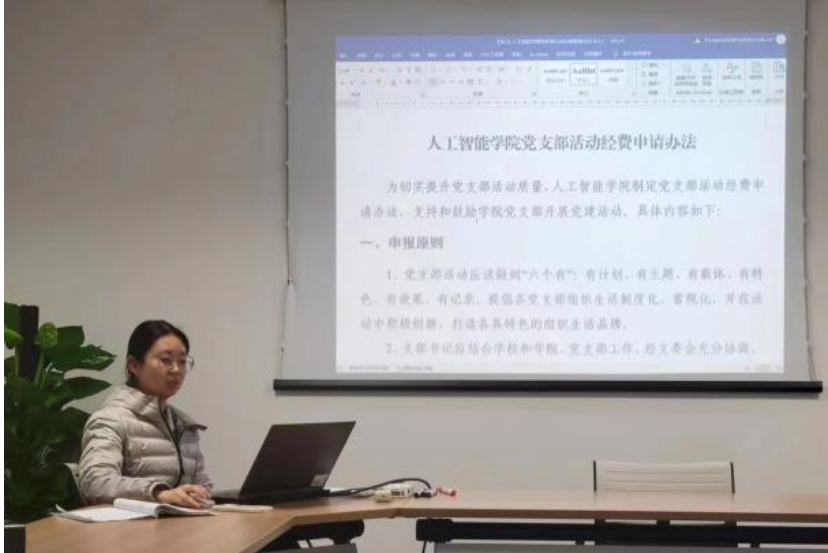 图2.石红薇老师讲解《新葡的京集团35222党支部经费申请办法》