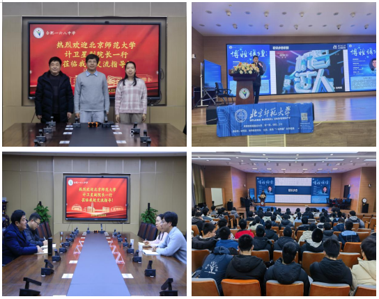 2024年12月25日下午,安徽本科招生宣传组组长计卫星教授、珠海校区教务部杜文婷老师、黄永祯教授共赴合肥市第一六八中学开展优质生源基地校座谈会和科普讲座工作。在与校方领导座谈会中,首先与校领导沟通本次到访的目的以及对一六八中学的办学成果和生源质量表示肯定,并对最新招生政策、升学热点等问题进行热烈讨论。黄老师面向高二年级学生开展《步态识别的发展与应用》主题科普讲座,讲座从步态识别的发展历程、研究思路到在公共安全与辅助诊断等领域的应用情况,本次讲座不仅加深合肥一六八中学同学们对步态识别的认知,更点燃了他们对科学探索的热情。