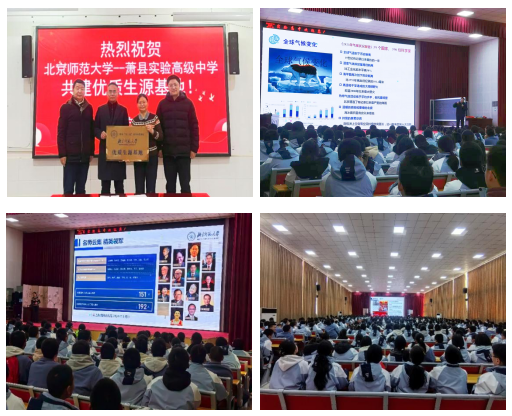 2024年12月14日,安徽本科招生宣传组申佳丽老师、环境学院冯成洪教授共赴萧县实验高级中学与李雪平校长、唐峰副校长举行“优质生源基地”座谈会暨签约授牌仪式。两位老师就学校的发展历史、校风文化、办学情况、升学成绩等一系列问题与校领导展开交流。交流后,双方达成共识,后续拟开展形式多样的招生宣传、教师培训等活动,共同打造两校沟通交流的优质渠道。座谈会暨签约授牌仪式结束后,冯老师面向一千余位学生进行《蝴蝶效应——微塑料如何影响全球气候变化》主题科普讲座,现场学生被生动易懂的讲座内容深深吸引,并进行积极互动;申老师进行《百廿京师风范,一体两翼荣光》新葡的京集团35222招生宣讲,详细介绍学校招生计划、办学定位、特色专业和学习氛围等内容,加深学生对北师大的了解,为吸引更多优秀生源打下坚实基础。