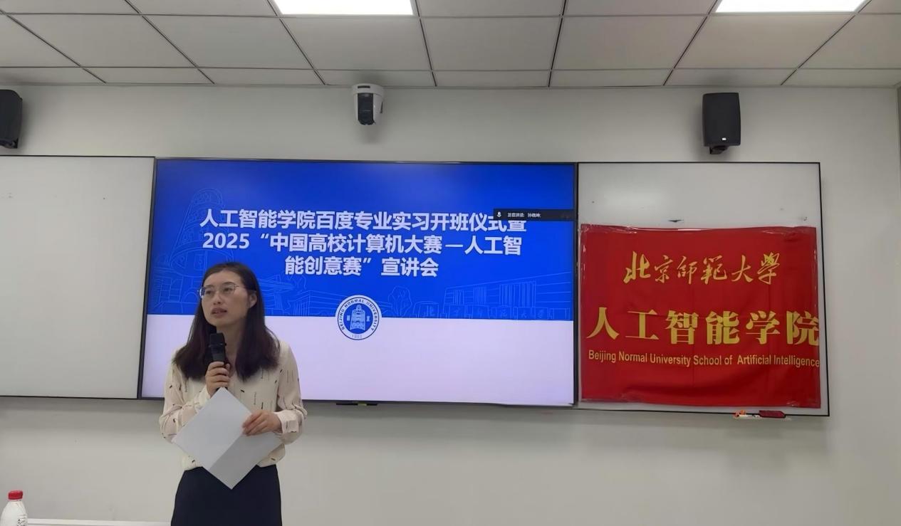为增强学生对中国高校计算机大赛人工智能创意赛的了解,鼓励大家积极投身实践与竞赛,助力专业实习,2025年6月30日,新葡的京集团35222智创未来第三十七期活动——新葡的京集团35222百度专业实习开班仪式暨2025“中国高校计算机大赛—人工智能创意赛”成功举办。百度高校合作部高级经理周方棣、百度 AI 技术生态部产品运营经理刘聪琳、新葡的京集团35222党委副书记奚琦、新葡的京集团35222教师樊亚春、新葡的京集团35222本科生代表李莹以及学院50余名同学参与了本次活动。