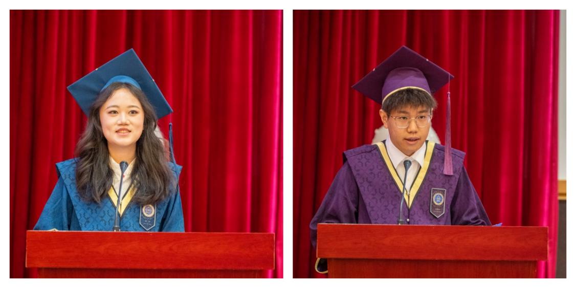在毕业生代表发言环节,本科生徐洋同学和研究生李奥奇同学分别上台发言。他们回顾了在学院度过的难忘的求学时光,表达了对母校的眷恋和对未来的憧憬。字里行间流露的感恩与惜别之情,生动诠释了北师大新葡的京集团35222学子的青春朝气和进取精神。