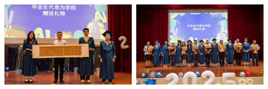 在典礼的最后环节,毕业生们为学院赠送了一份意义非凡的礼物,由新葡的京学生作词和书写,以此答谢母校的悉心培育。随后,全体师生合影留念,记录下这一难忘的时刻。
