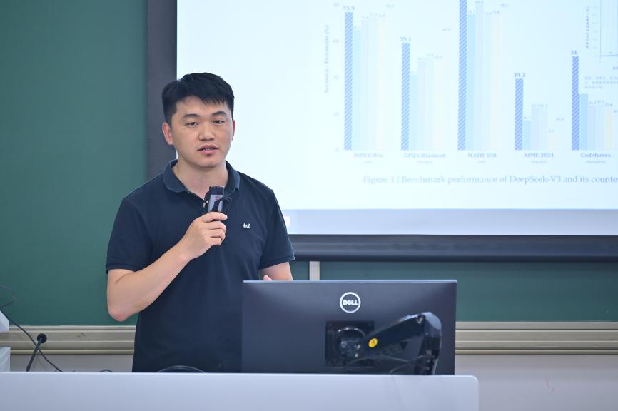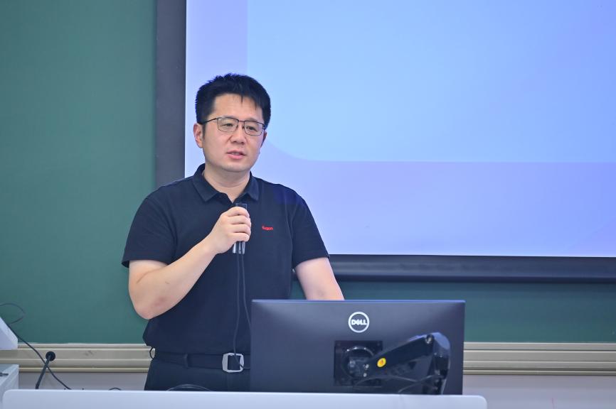 中科曙光智能计算产品事业部生态合作总监赵瑞强先生带来专题报告《国产算力软硬件耦合优化与实践》。他结合具体案例,深入剖析了国产算力平台在人工智能、大数据等场景中的技术挑战与突破路径,为师生提供深度了解国产算力平台的机会。